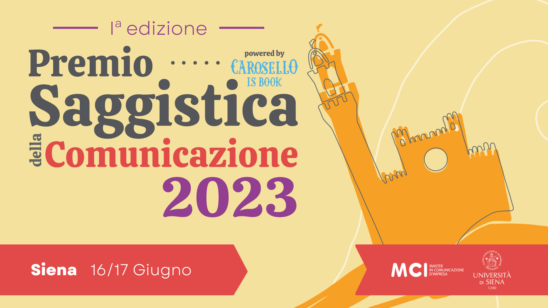 Il 16 e il 17 giugno daremo il via alla prima edizione di “Carosello is Book: Premio Saggistica della Comunicazione“, organizzato in collaborazione con l’Università di Siena. È un premio unico nel suo genere, dedicato ai migliori saggi scritti negli ultimi mesi a tema comunicazione, marketing, pubblicità, cultura digitale e d’impresa.